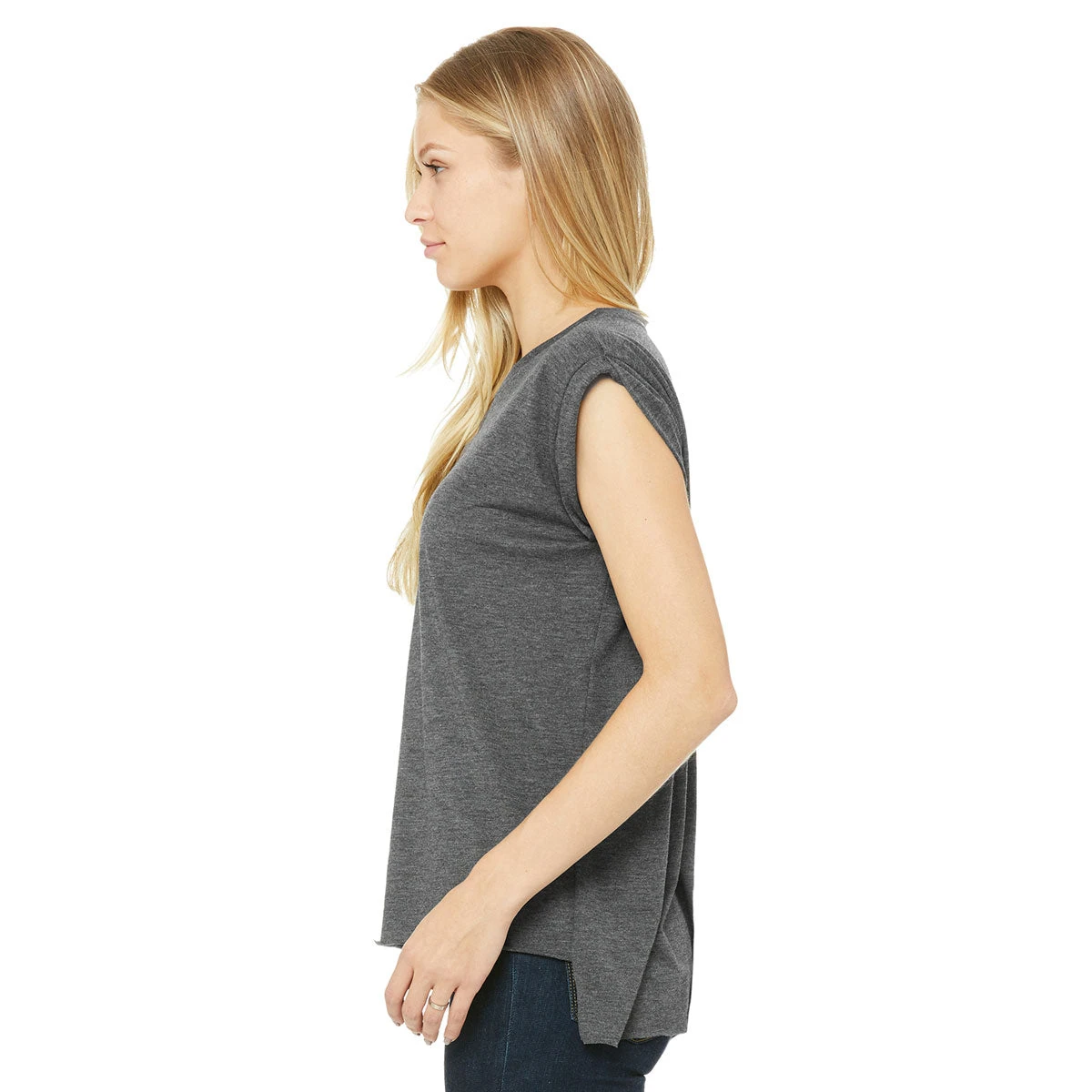 Flow effortlessly into fashion excellence by wearing the company logoed Bella + Canvas Women’s Dark Grey Heather Flowy T-Shirt with Rolled Cuff. Side seam stitching increases the strength of the rugged polyester and viscose fabric to give you an attractive t-shirt that handles any athletic competition with ease. The stylish rolled cuffs will spark interest in your fine taste for fashion when you attend professional networking events. Make the spark catch fashion fire by adding a custom logo on the large imprint area. With a logo, you raise the standard for delivering high quality products and services.
