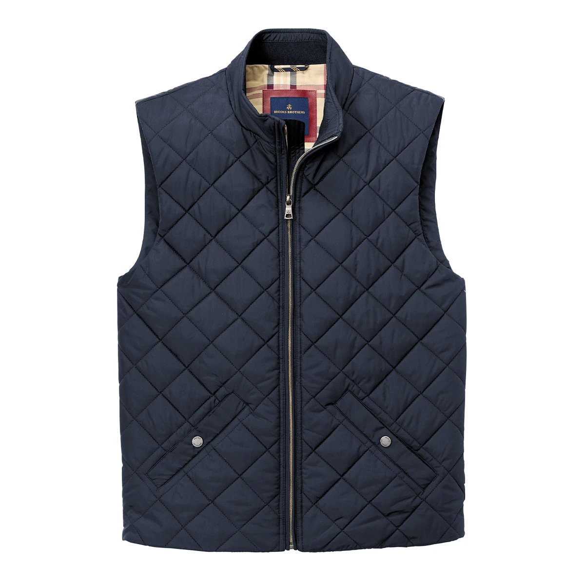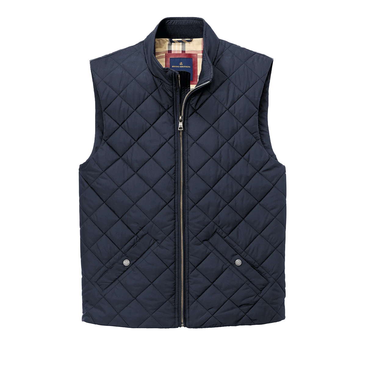 Stand out with a custom embroidered Brooks Brothers Men’s Night Navy Quilted Vest. Metal front zipper and details make for the trademark suaveness and sophistication made for any boardroom or tradeshow. Have your entire team stand out with this high-quality, professional vest.