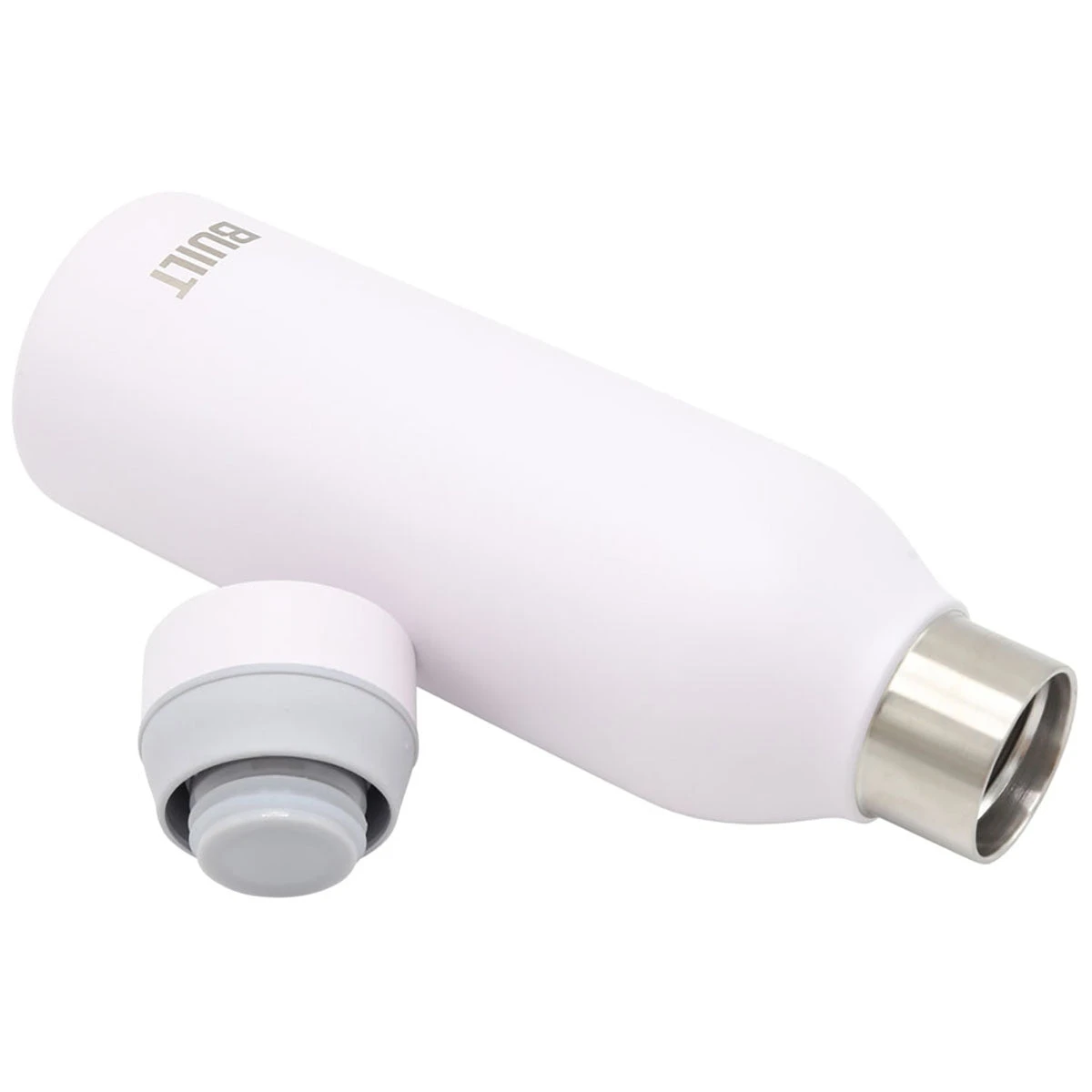 The Built White 18 oz Cascade Water Bottle is crafted with 18/8 double-wall stainless steel construction. Features a threaded lid that easily opens and closes and creates a leak-proof vacuum-seal to prevent spilling. A silicone grip on the lid provides a comfortable hold as well as helps to open and close the lid more easily. The Cascade bottle fits in a standard size cup holder.