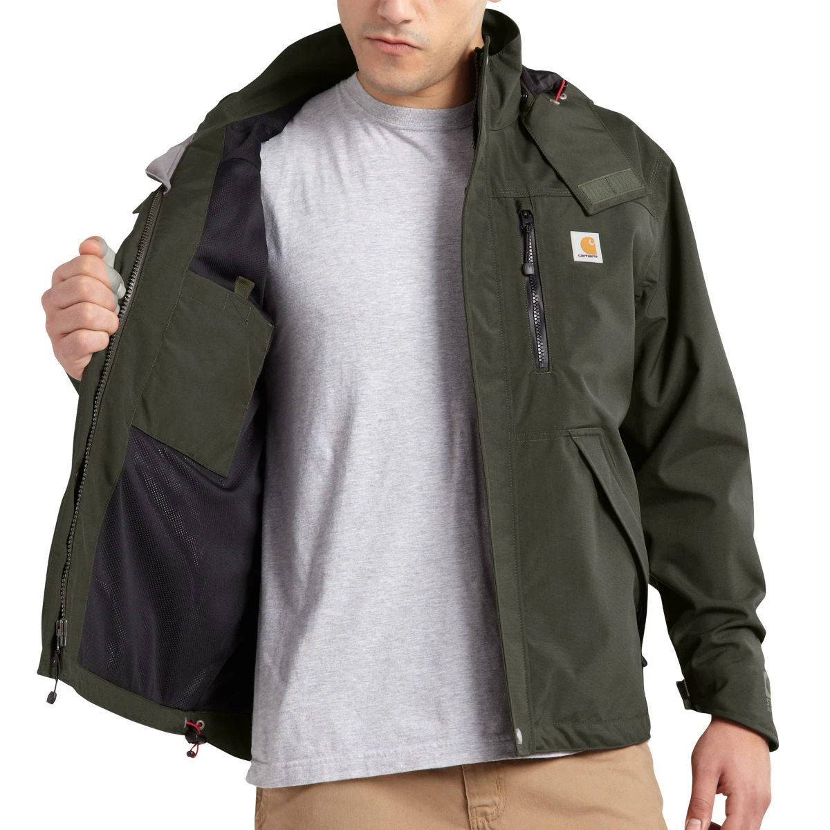 Pleated elbows and stitched main seams make Carhartt Men’s Olive Shoreline Jacket a popular outer garment for outdoor enthusiasts. One hundred percent nylon oxford shell and polyester mesh lining provide you with supreme comfort. Attach a custom logo to the large imprint area to promote your company during business seminars and conferences. Carhartt Men’s Olive Shoreline Jacket include a left chest pocket, two inside pockets, and two lower front pockets for convenient storage of smaller personal items. Highly breathable materials keep you comfortable, as you move from one business meeting to the next business meeting.