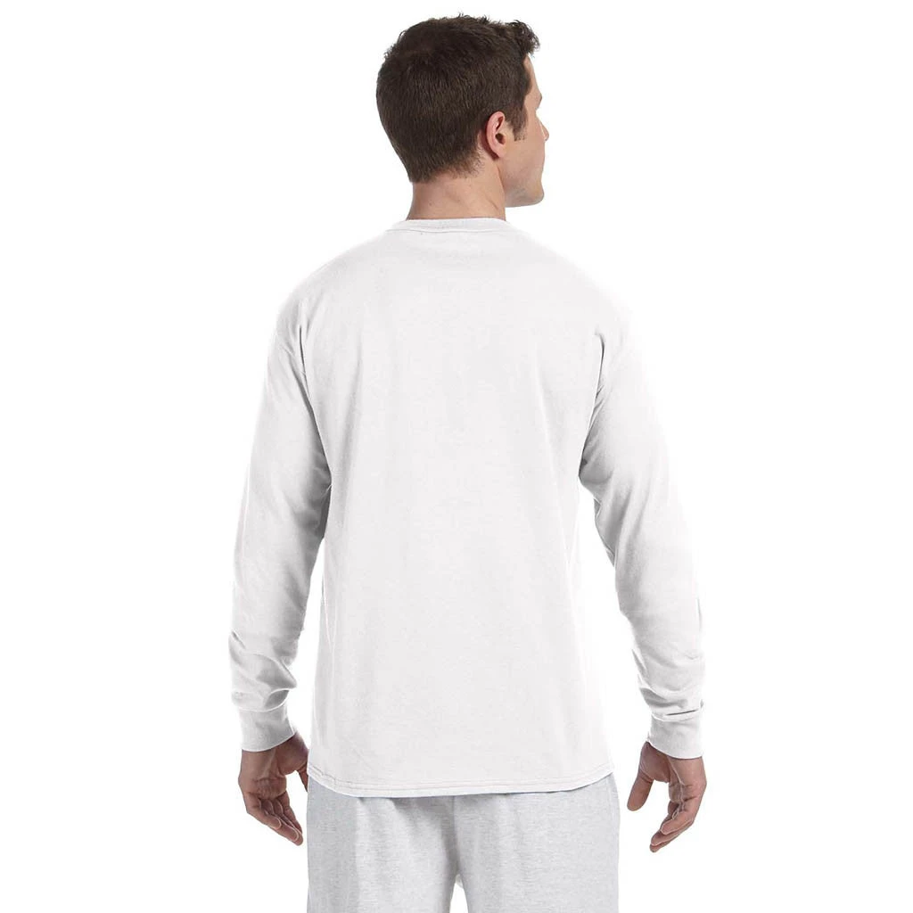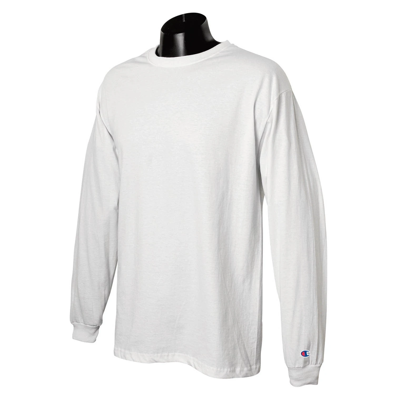 There’s a reason they call it Champion–and it’s not just the brand name. Champion has been a trusted name in sportswear thanks to classic style, quality craftsmanship, and plain being one of the best around. Featured here is the Champion Men’s 5.2 oz White L/S Tagless T-Shirt. This is a timeless design that will never go out of style. The Champion Men’s 5.2 oz White L/S Tagless T-Shirt is great for not just playing sports, but it’s wonderful for everyday wear as well. Extremely comfortable, the tagless aspect allows for no neck irritation. It is made of 100% open-end cotton, has ribbed cuffs, a rubbed collar and there is a logo above the left cuff.