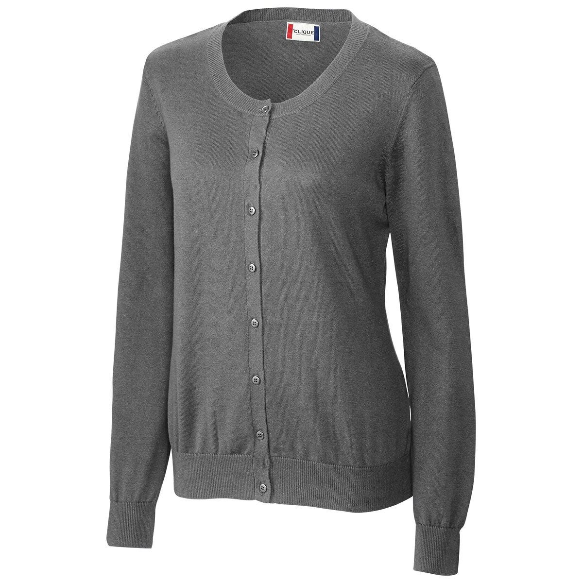 The Clique Women’s Charcoal Melange Imatra Cardigan Sweater is a stylish fashion option that offers comfort, too. With a custom logo affixed to the front, you can easily advertise your company name. Available in pleasing color tones, you really can’t go wrong with any color you choose. Features of this cardigan sweater include a 100% cotton material, full button front closure, jewel neckline, 12-gauge jersey stitch, and jersey self-trim neck. This product makes an excellent corporate apparel gift for a wide array of company-sponsored events. It’s also an excellent employee apparel item.