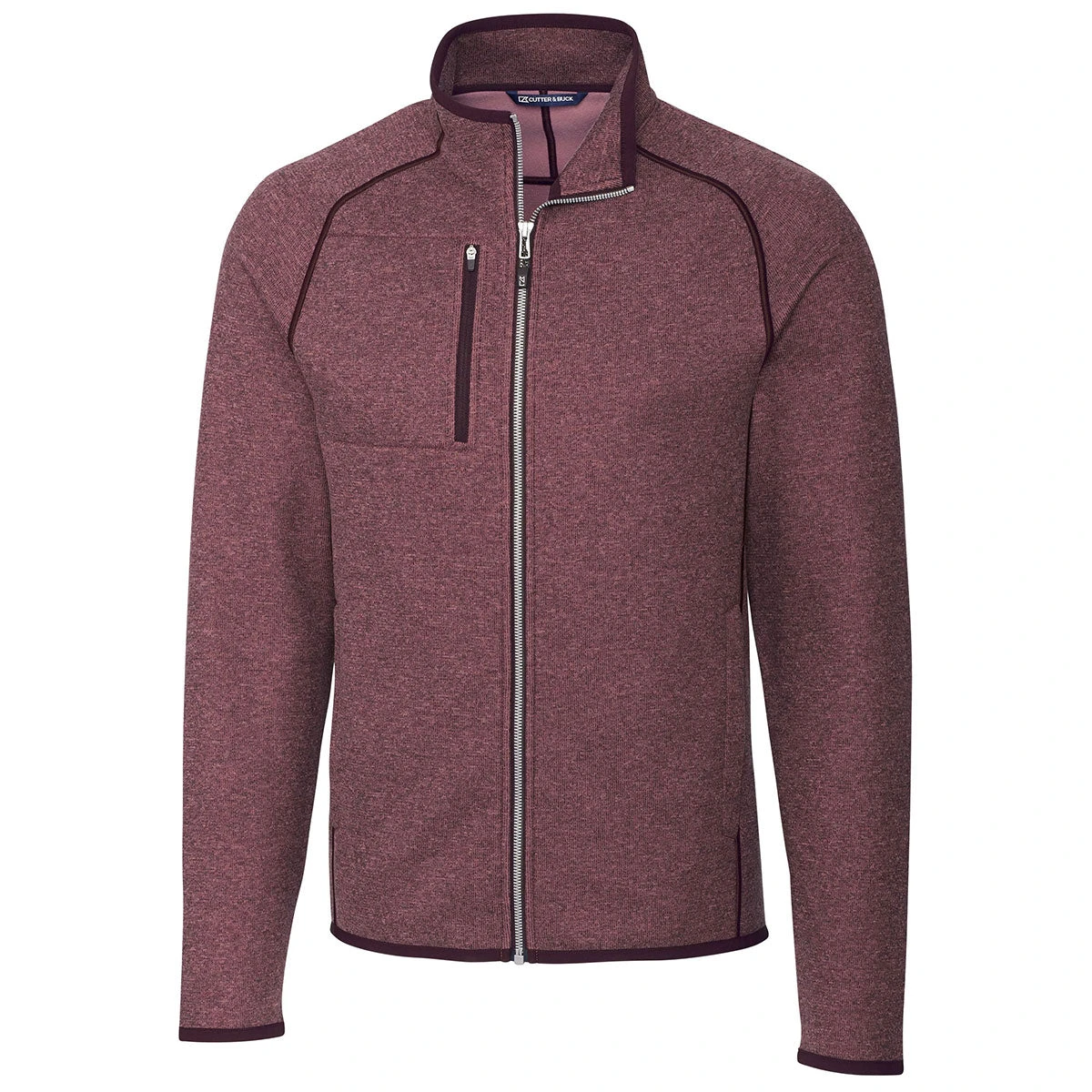 The Cutter & Buck Men’s Bordeaux Heather Mainsail Jacket offers a modern style with ideal warmth. Add your custom logo to the front of the jacket and you can turn this already exceptional item into an advertising item for your company. This corporate apparel product is available in a variety of appealing colors with welcome features such as a 100% polyester material, sweater knit material, brushed fleece interior, mock neck full zip, zippered chest pocket, and CB logo at back yoke. This jacket makes an excellent employee apparel gift as well as to hand out as a giveaway gift at any upcoming corporate event.