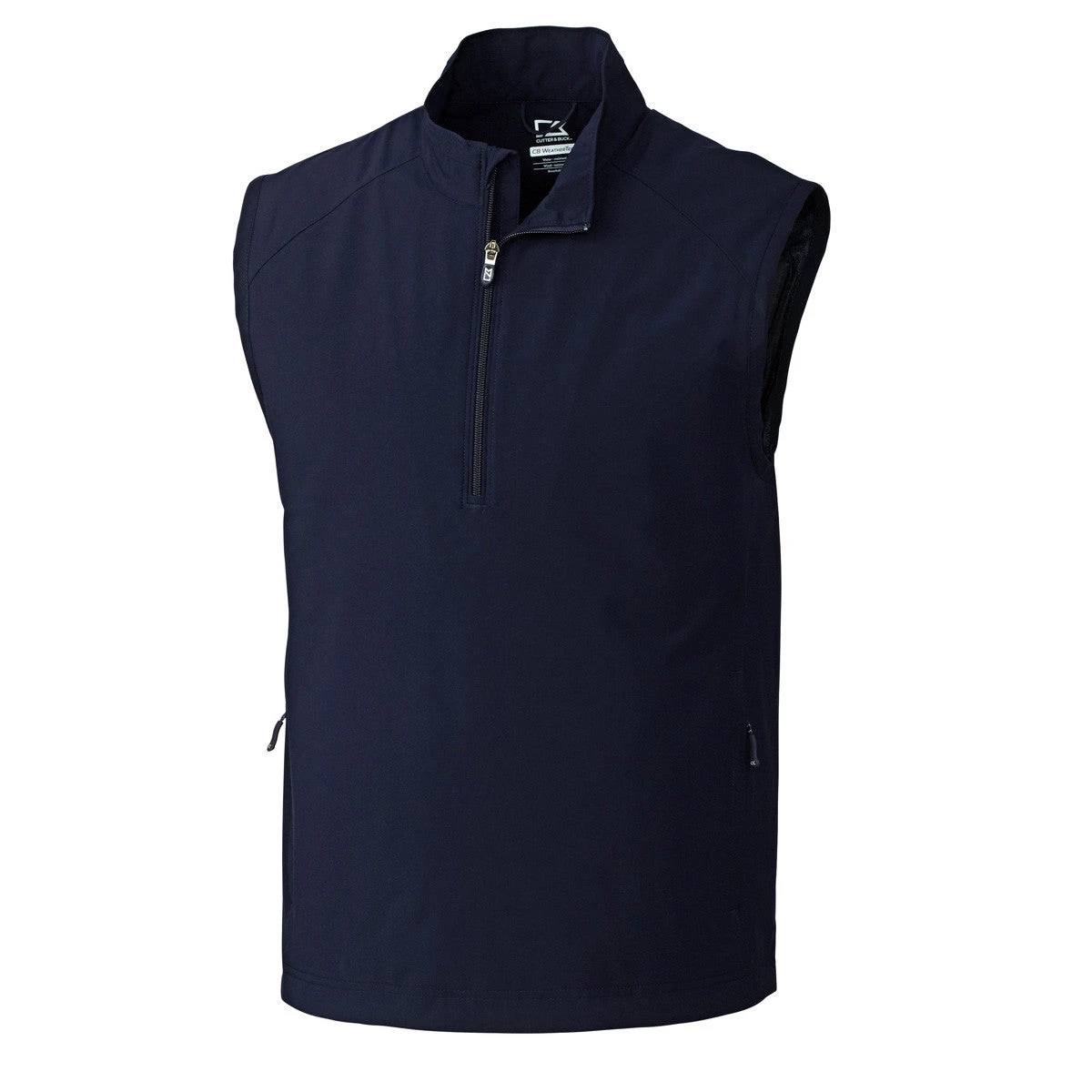 Layering is a subtle art. It requires knowing what color works well with another. It requires knowing just how the weather will cooperate with your decision to layer. It requires…okay, fine, it’s not that hard if you have one of these Cutter & Buck Men’s Navy Blue WeatherTec Summit Half Zip Vest. But you have to admit that we had you going there. Add your own custom logo with our printing process to brand this vest individually.