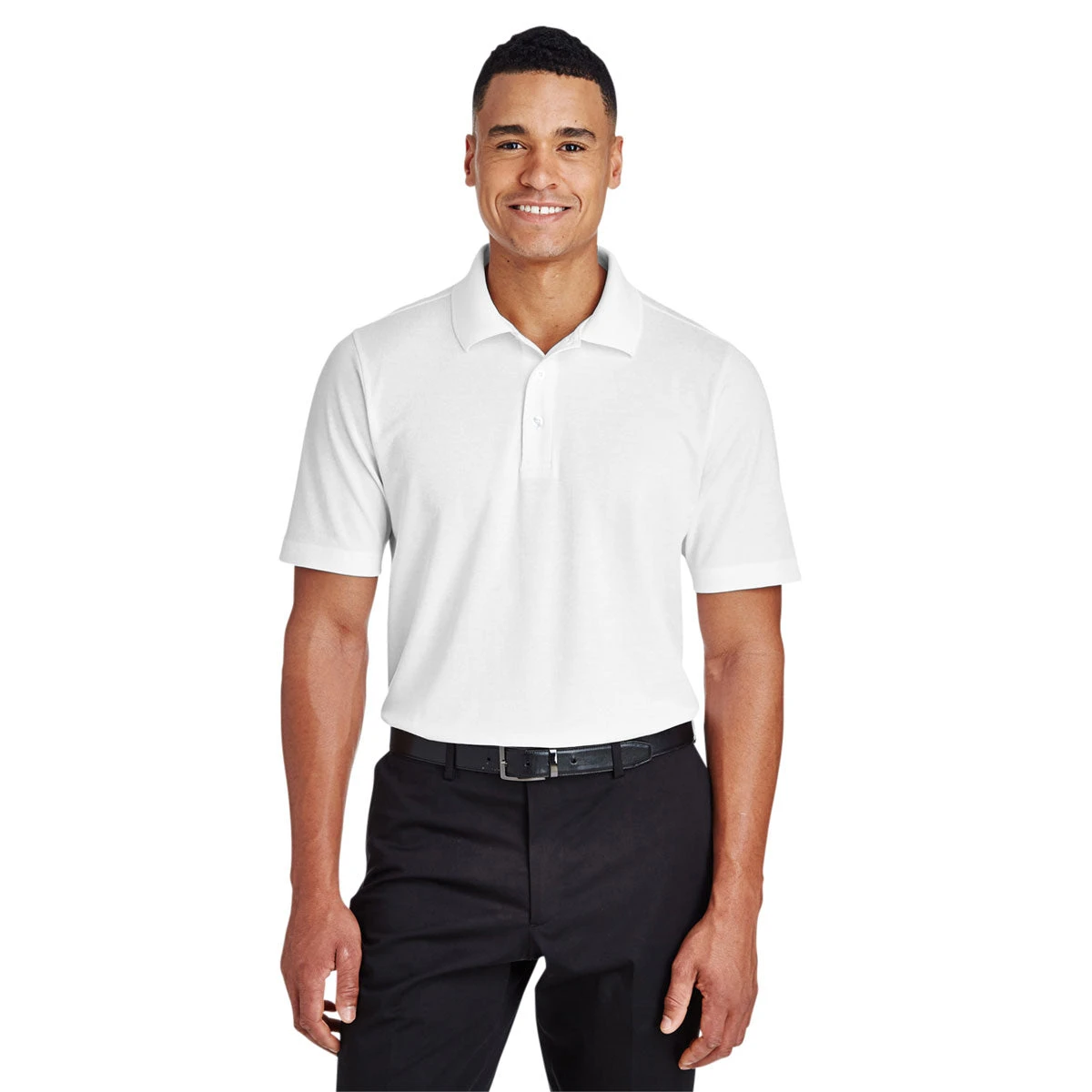 Before the next company golf outing, order the embroidered Devon & Jones Men’s White CrownLux Performance Polo for the male members of your team. The front of the stylish polo contains 100% durable polyester, while the back side enjoys a cotton and polyester blend to enhance comfort. Moisture wicking technology keeps the skin dry and cool throughout every round. The matching flat knit collar will attract the attention of fellow players. Take advantage of the attention by adding a custom logo on the large imprint area. Dyed-to-match buttons exude panache to make the polo your go to corporate apparel for outdoor recreational activities.