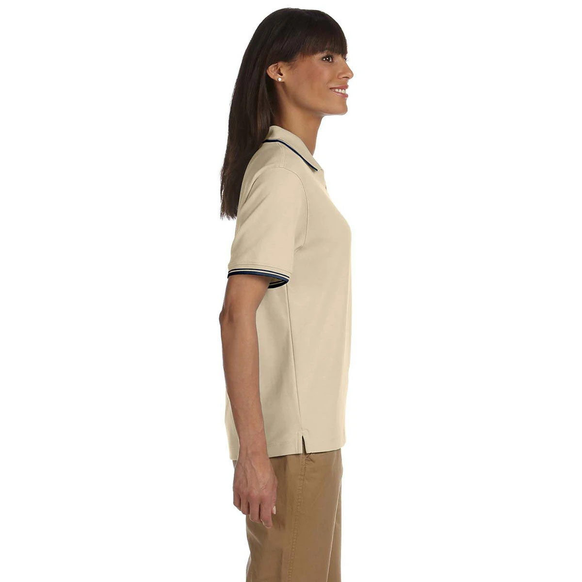 Corresponding Men’s Style: Devon & Jones Men’s Stone/Navy Tipped Perfect Pima Interlock Polo