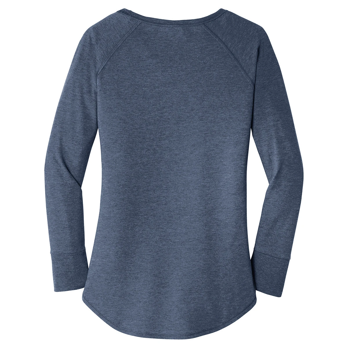 Turn heads at the next professional networking event by wearing the custom logoed District Women’s Navy Frost Perfect Tri Long Sleeve. With all eyes on you, display the corporate logo attached on the large imprint area. Stylish fashion combines with supreme comfort to place the long sleeve tunic on every professional female’s must have corporate apparel list. The lightweight design includes polyester and rayon to ensure long lasting durability. Soft cotton blends with polyester and rayon to help the tunic achieve the ultimate in softness. The curved hem and rib knit cuffs present a refined look that lets everyone know you have things under control.