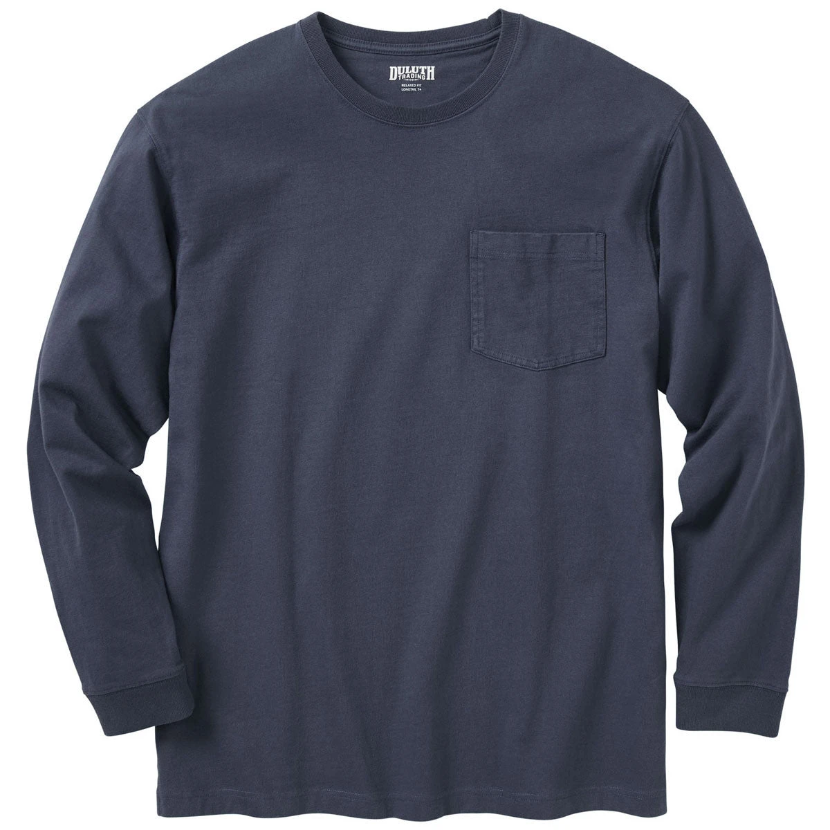 In 2002, in the cause of modesty and good taste, we introduced the Duluth Men’s Navy Longtail T Long Sleeve T-Shirt with Pocket. A little bit of innovation – the ideal amount of extra shirt body length – solved an age-old problem: the infamous, much feared Plumber’s Butt. Suddenly, the guys who bend over when they work had new respectability. They were better able to stay in the good graces of clients and stop frightening unsuspecting passersby. This version of our famous Longtail T Shirt has long sleeves, a comfy crew neck and roomy chest pocket.