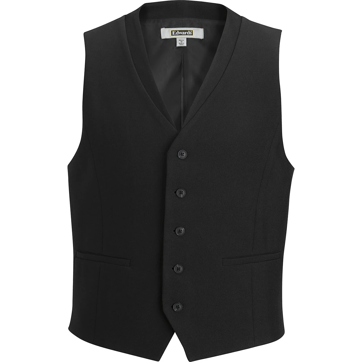 Add embroidery to the Edwards Men’s Black Ottoman Trim Vest to create an upscale look that will function in the most professional of settings. The 5-button closure vest is ideal for layering under a suit jacket or wearing as part of a complete uniform. Add a corporate logo to show affiliation with a company or cause in a unique way. Place an order right away.