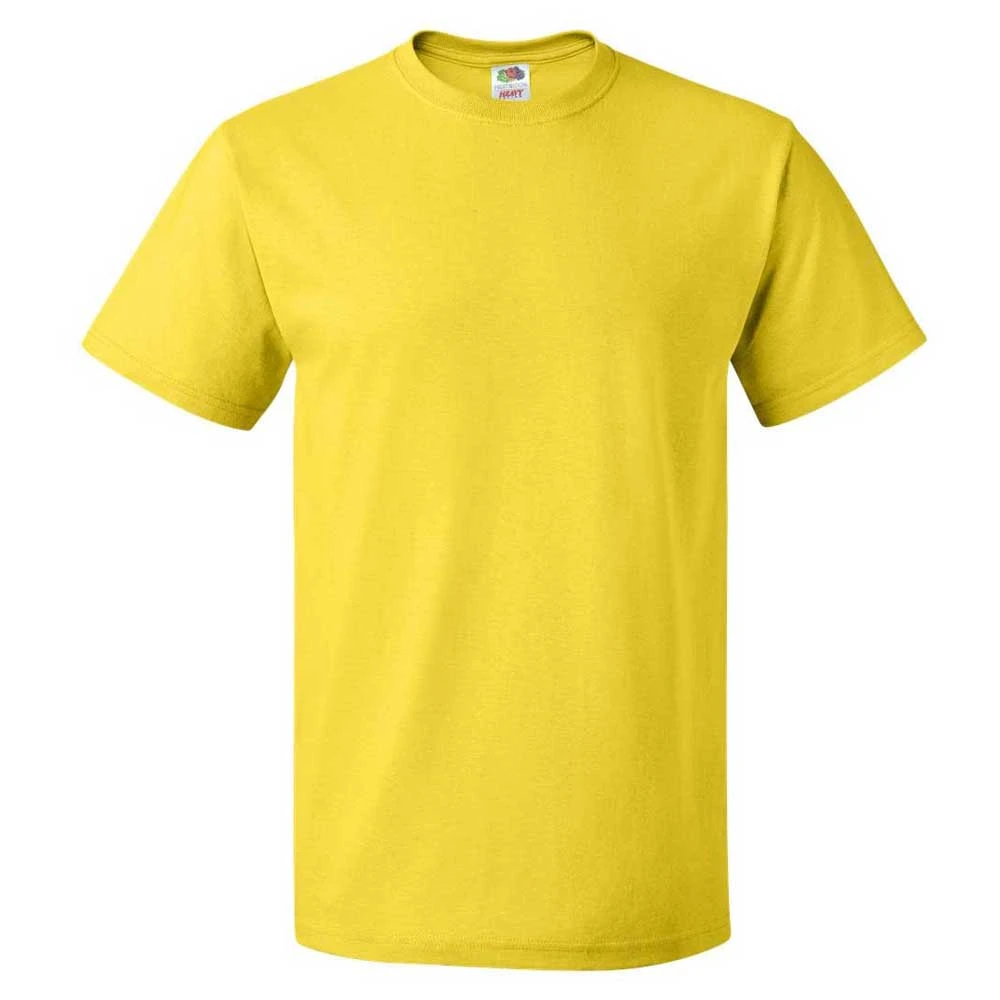 A basic tee is a must have, so create a custom look with the Fruit of the Loom Men’s Yellow HD Cotton Short Sleeve T-Shirt. Perfect for every wardrobe, these soft, pre-shrunk cotton tees offer high density fabric for exceptional print clarity. Add the screen print of your choosing or design to offer these as custom gifts for friends and family or as a sale item at trade shows or other events. The ribbed collar, shoulder taping, and double needle stitched sleeves offer durability whether at work, school, or play.