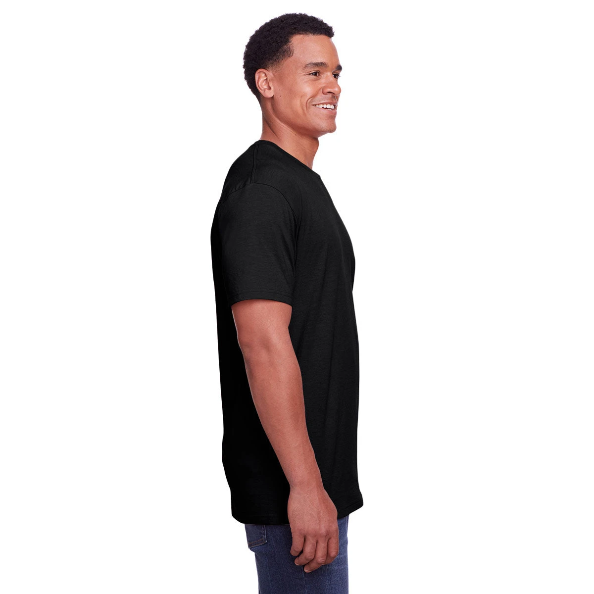 A great custom tee can be found with the Gildan Men’s Pitch Black Softstyle CVC T-Shirt. A tee is an ideal choice for many activities and businesses, so go with the best. Add a custom logo to this cotton polyester blend t-shirt to create a promotional item for your club, organization, or cause. The screen print you choose will print smoothly on the high-stitch density tee whether being used as employee apparel or specialty items for your logoed apparel line. The modern classic fit is what most people look for in a custom tee, so be ready for these to fly off shelves.
