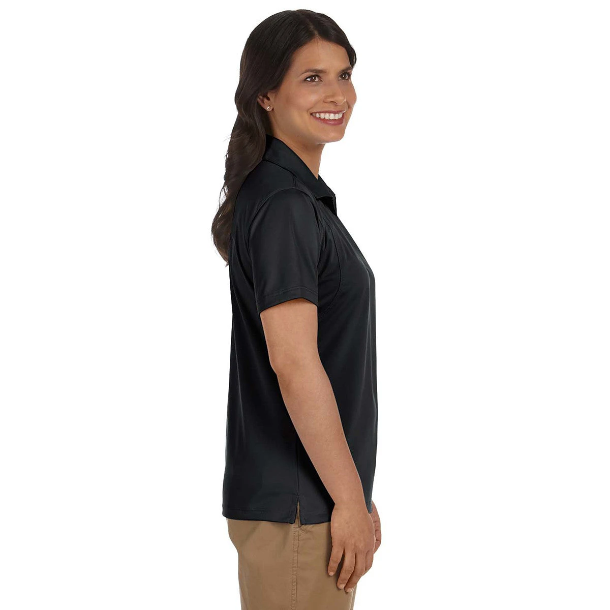 Lightweight 100% polyester contains snag resistant properties that prevent turning the Harriton Women’s Black Micro-Pique Polo into a shredded mess. Panel inserts located along the sleeves improve the performance of the polo during golf outings and prolonged camping trips. The feminine overlapping V-neck collar will be a conversation starter at your next professional networking event. Just remember to attach your company logo to keep the conversation going. Moisture wicking technology prevents the unsightly perspiration stains that diminish corporate apparel quality. Make the polo the choice for the gift you hand out to employees and loyal customers at a company event.