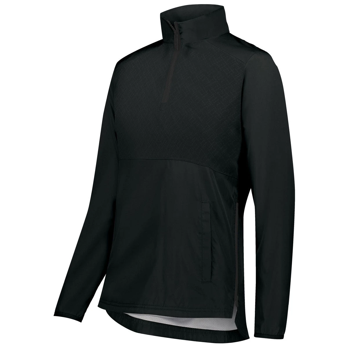 Improve your wardrobe with embroidery on the Holloway Women’s Black SeriesX Pullover. The long sleeve pullover in quarter zip styling is easy to wear and comfortable throughout the day. Add a company logo to the micromesh lined nylon body with taffeta lined sleeves to give as employee gifts or use as part of a uniform for those who work outdoors. Design a custom logo to add to your logoed apparel line and share your creativity with those who visit your store. For convenience, front pockets, dropped tail with side vents, and side seam zipper are included in this versatile pullover. Place your order today.