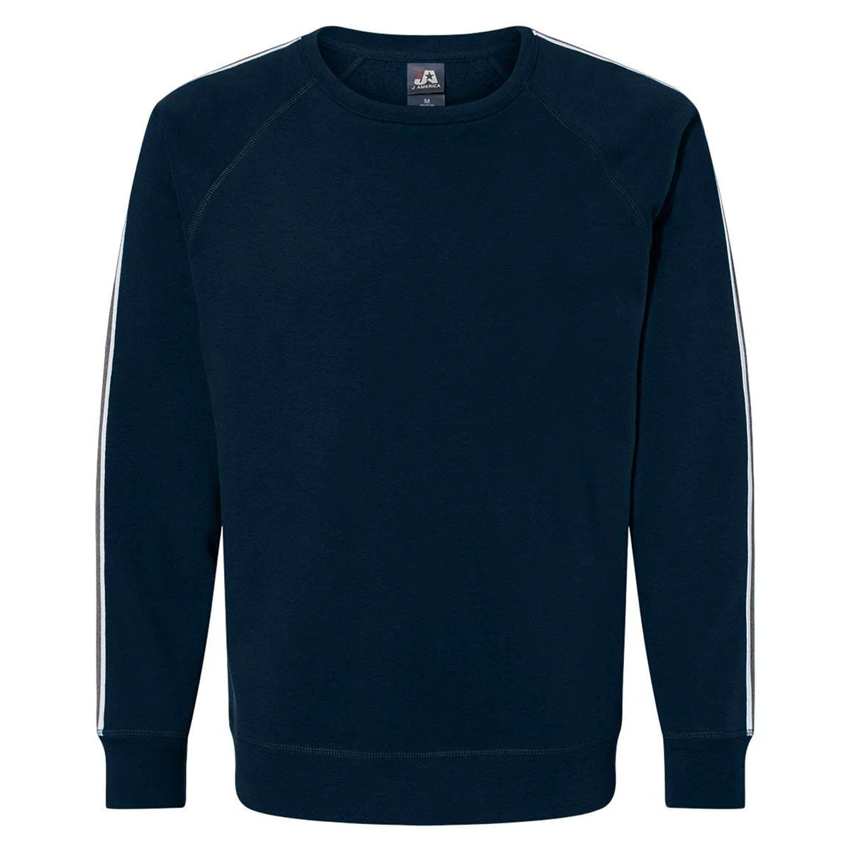 Design your screen print for the J. America Men’s Navy Rival Fleece Crewneck Sweatshirtto add to your logoed apparel selection at home or in your shop. Made of a cotton polyester sueded fleece this soft crewneck has a unique stripe down both sleeves for added flair. The simple design is the ultimate in comfort whether hanging at home or with friends. Add a company logo to offer as employee gifts for any special occasion or design something just for yourself and give as a custom gift.