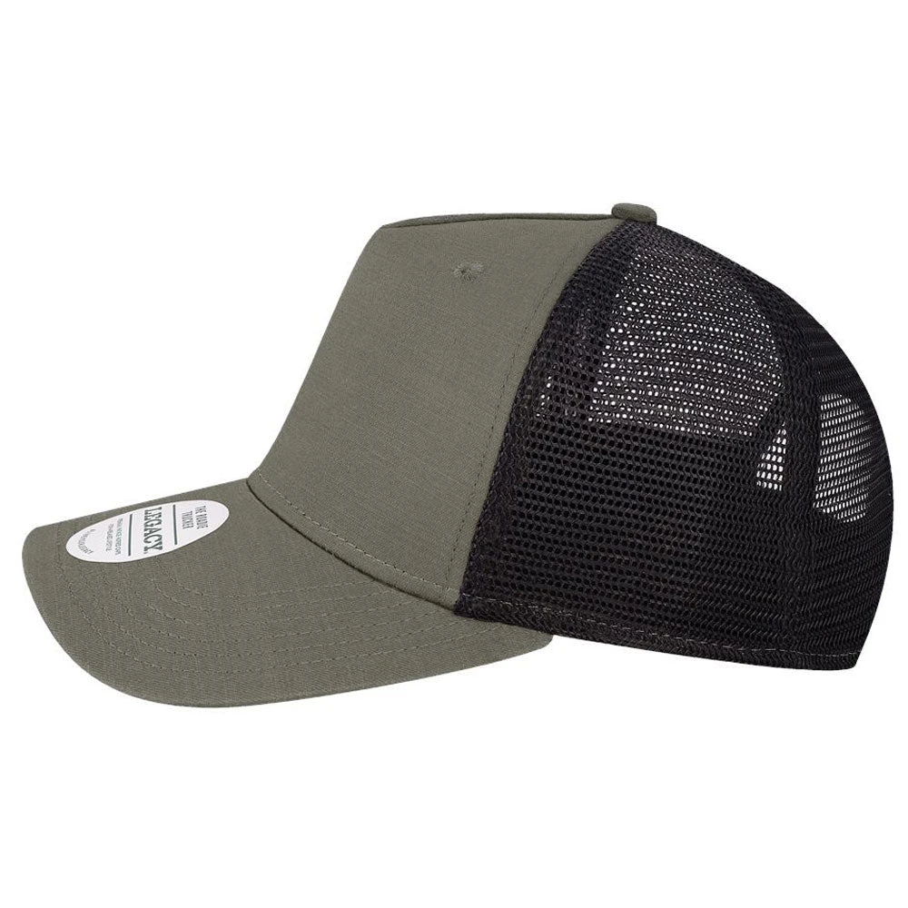 Take your personalized apparel to the next level by adding your company’s custom logo or design to the Legacy Charcoal Slub/Black Five-Panel Trucker Cap. This classic accessory is available in a variety of contemporary color combinations and features traditional touches like mesh panels and customizable snapback closure. Â