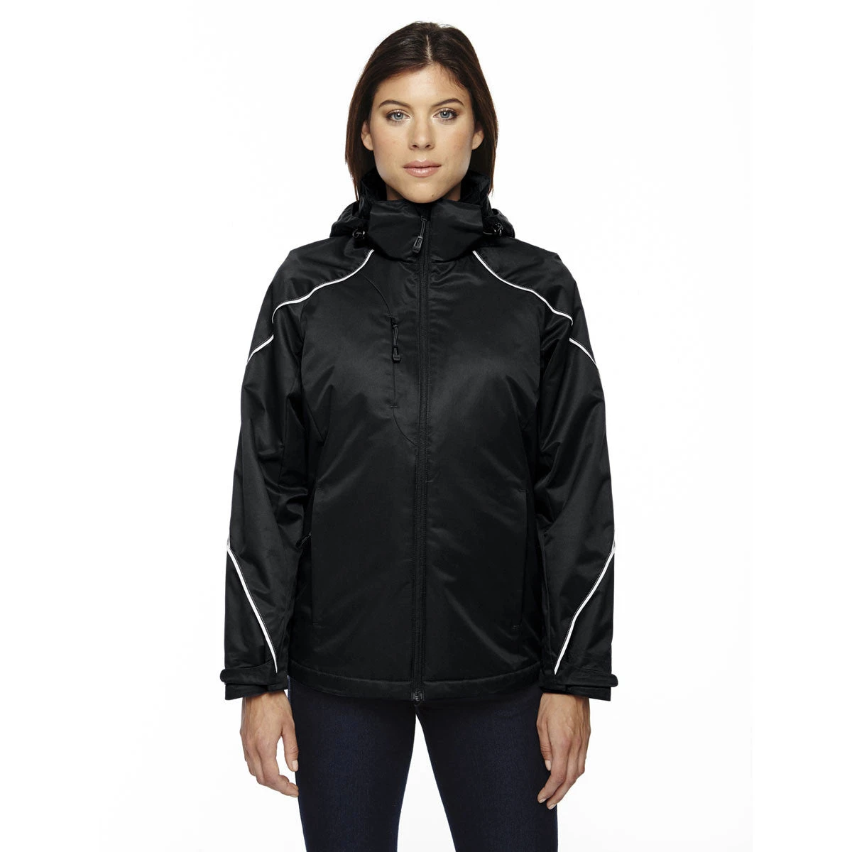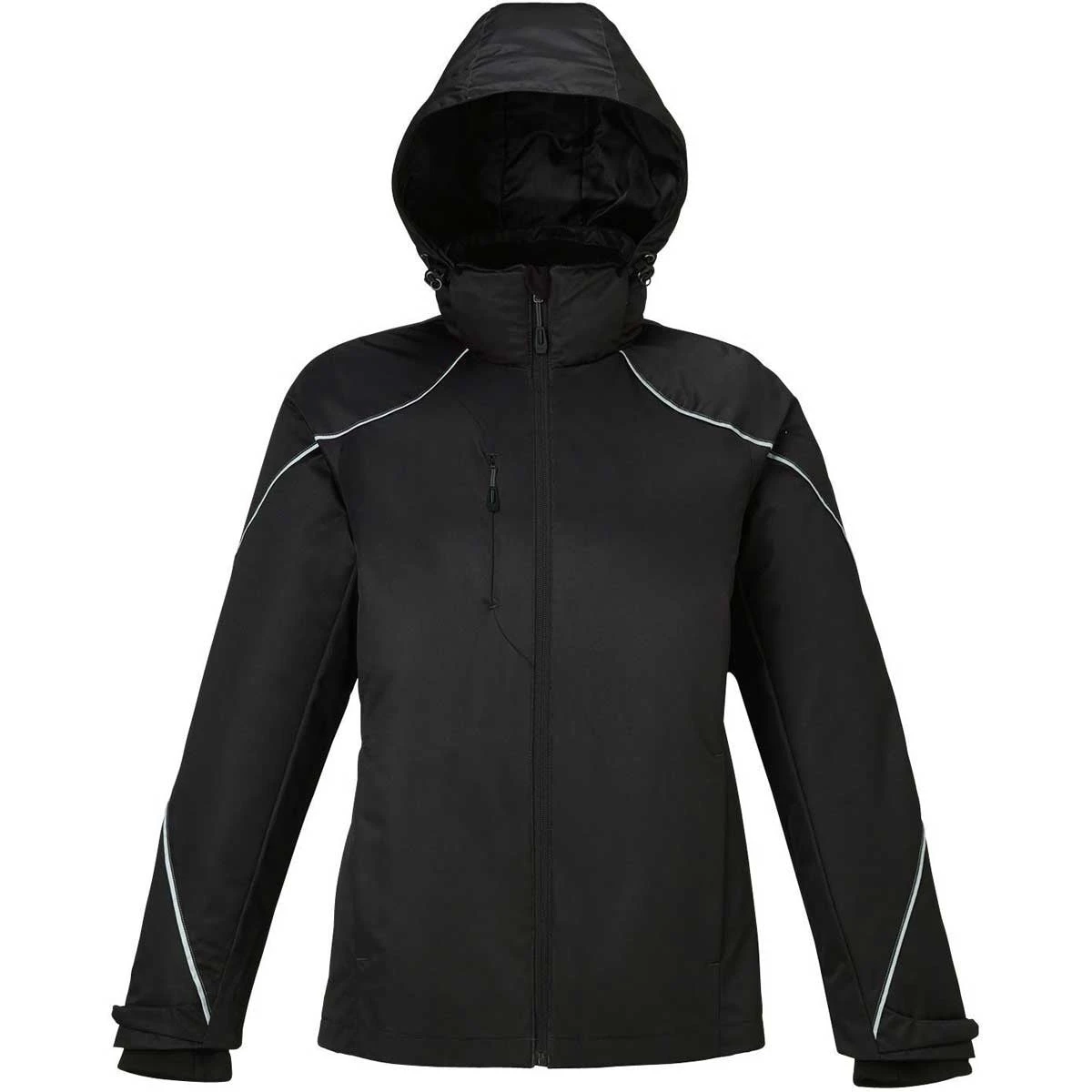 One-hundred percent polyester twill provides the best of both fashion worlds for the North End Women’s Black Angle 3-In-1 Jacket with Bonded Fleece Liner. Highly durable polyester keeps this jacket in mint condition for years to come, while the soft twill enhances your comfort zone. Wear this jacket outdoors during a long walk or at the office to impress professional peers. Contrast stitching on the flat reflective piping accentuates the already stylish North End Women’s Black Angle 3-In-1 Jacket With Bonded Fleece Liner . A custom logo added to the jacket boosts your company’s profile in the community. With a corporate logo attached to the large imprint area, you create the perfect company gift for high achieving employees and loyal patrons of your business.