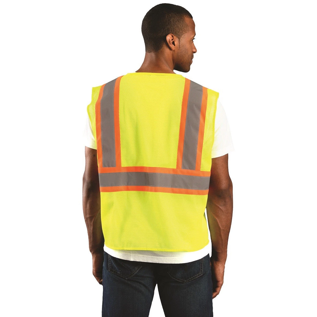 If you work outside at night, you need to wear a safety vest that alerts motorists of your presence. OccuNomix designs and manufactures a line of safety vests that include two-inch wide high visibility reflective tape that motorists can see from several hundred feet away. Large openings allow you to wear the OccuNomix Men’s Yellow High Visibility Value Mesh Two-Tone Safety Vest over heavy jackets during cold weather work projects. OccuNomix adds several easy to access pockets for storing important work-related tools, such as a tape measurer or a Phillips screwdriver. Highly breathable mesh keeps you comfortable on hot, humid summer days.