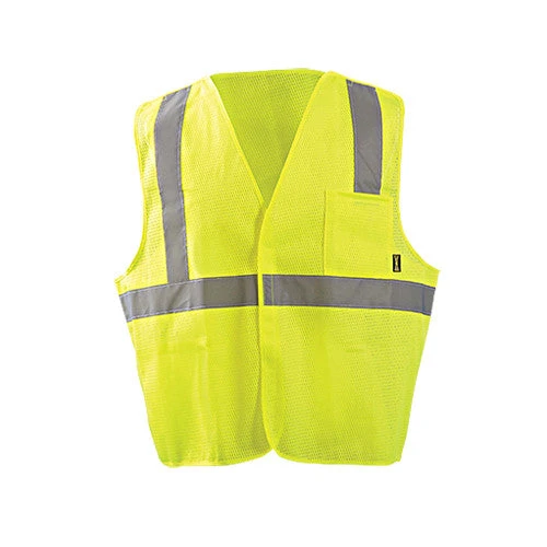 If you work outside at night, you need to wear a safety vest that alerts motorists of your presence. OccuNomix designs and manufactures a line of safety vests that include two-inch wide high visibility reflective tape that motorists can see from several hundred feet away. Large openings allow you to wear the OccuNomix Yellow 5 Pt. Break-Away Mesh Vest over heavy jackets during cold weather work projects. OccuNomix adds several easy to access pockets for storing important work-related tools, such as a tape measurer or a Phillips screwdriver. Highly breathable mesh keeps you comfortable on hot, humid summer days.