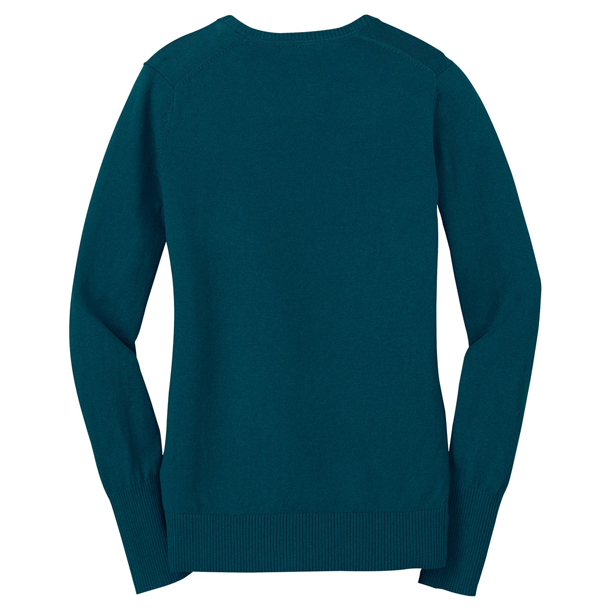 A good V-neck is hard to come by these days. Oh, you can find all sorts of V-necks online, to be sure. And they all have necklines in the shape of a V. But there’s more that makes a good V-neck. A V-neck should be warm while also retaining breathability a 60/40 cotton/nylon fabric would do the job. And it should be stylish, never baggy, with a rock-solid fit around the hips and wrists: a rib-knit cuff and hem would help there. And the V-neck should be rib-knit too, in order to ensure a sharper, crisper look. The Port Authority Women’s Moroccan Blue V-Neck Sweater is no ordinary online V-neck; instead, it is exactly what you’ve been looking for. Add your company’s logo to the front for a stylish, sophisticated employee uniform.