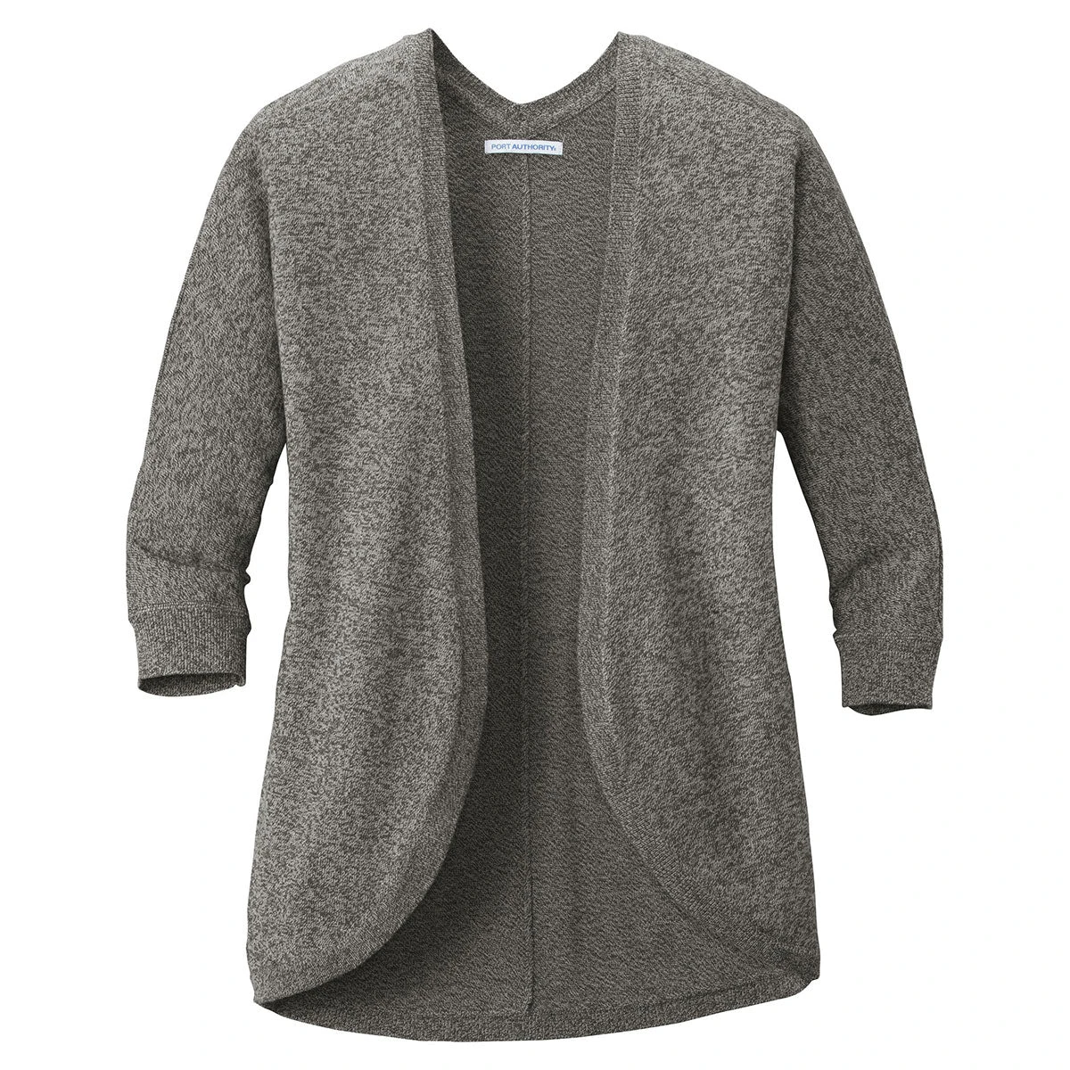 With a stylish drape, the custom Port Authority Women’s Warm Grey Marl Women’s Marled Cocoon Sweater offers optimal comfort for all day use. The extra fabric allows you to wrap yourself into a warm sweater that comes with a gently curved opening for added style. Cotton and acrylic combine to produce a soft sweater that resists the types of fraying that sends other styles of sweaters to donation bins. Three-quarter length Dolman sleeves with rib knit cuffs complement the style of the attention-grabbing sleeves. Add a custom logo to increase recognition for your company at civic and professional networking events.