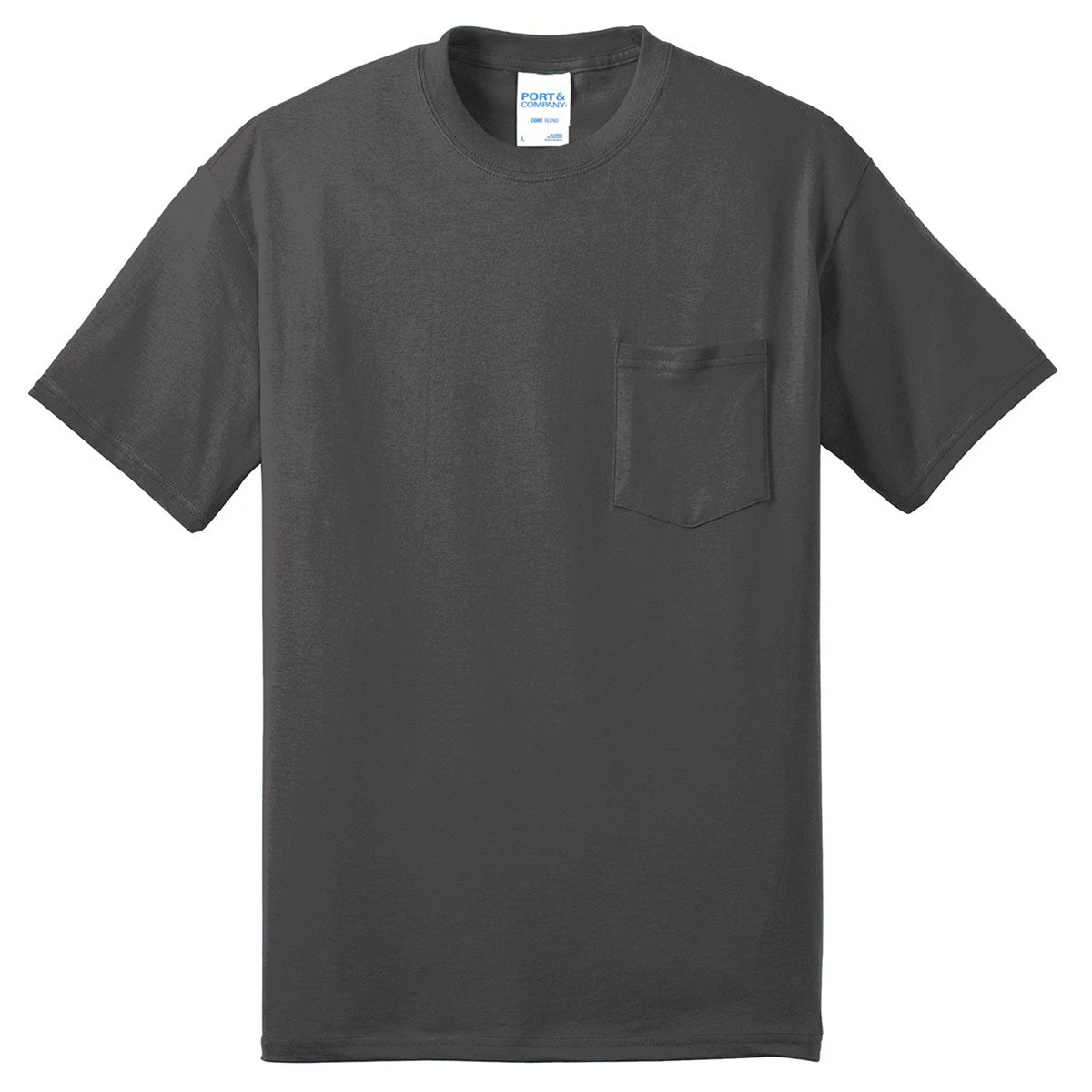 At the next company sponsored event, hand out the printed Port & Company Men’s Charcoal Core Blend Pocket Tee to thank the loyal customers that have made your business a superstar in the community. Opposite the convenient left chest pocket is an area to attach a custom logo. With a logo, you connect with customer prospects at industry trade shows. Port & Co blends recycled polyester into the fabric not only to bolster the strength of the long lasting tee, but also to make an eco-friendly fashion statement. Super smooth cotton delivers all day comfort to keep you energized.