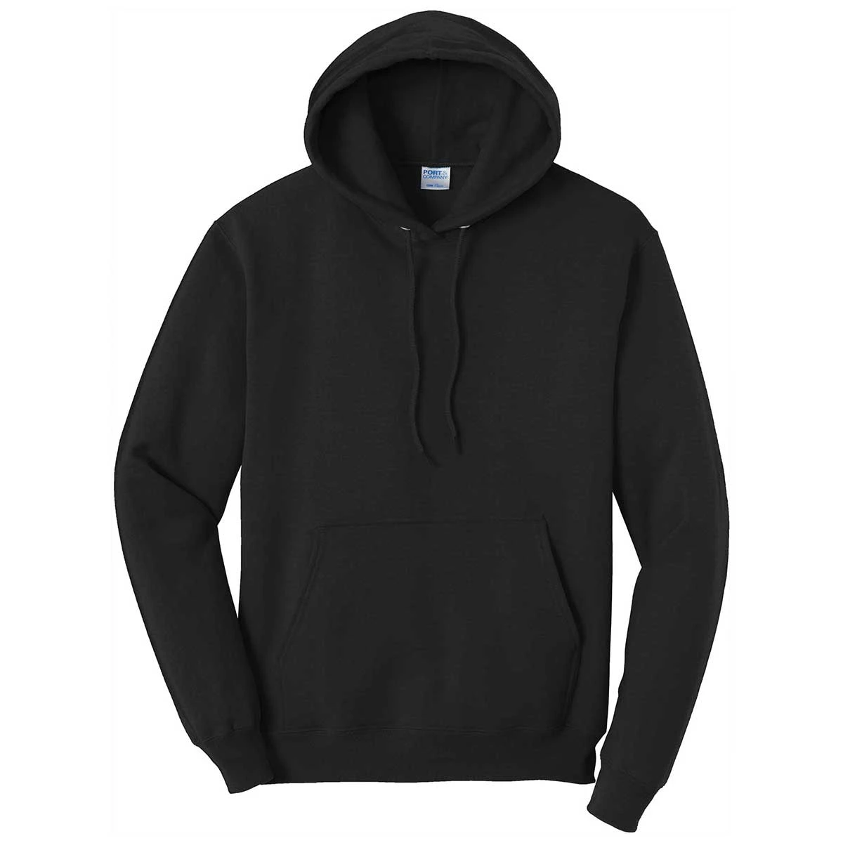 Enjoy total comfort in a custom Port & Company Men’s Jet Black Tall Core Fleece Pullover Hoodie with heat transfer of your choice. Made of a cozy 50/50 cotton/poly fleece material with air jet yarn for a pill-resistant finish, this hoodie is a must have addition for most activities. Add a custom logo to use as team gear for team events or a company logo for use as employee gifts that will be worn often. The fabric lined hood with drawstrings, tear away label, and front pouch pocket create a look that is comfortable and convenient. The additional length is ideal for those who are taller but still desire coverage.