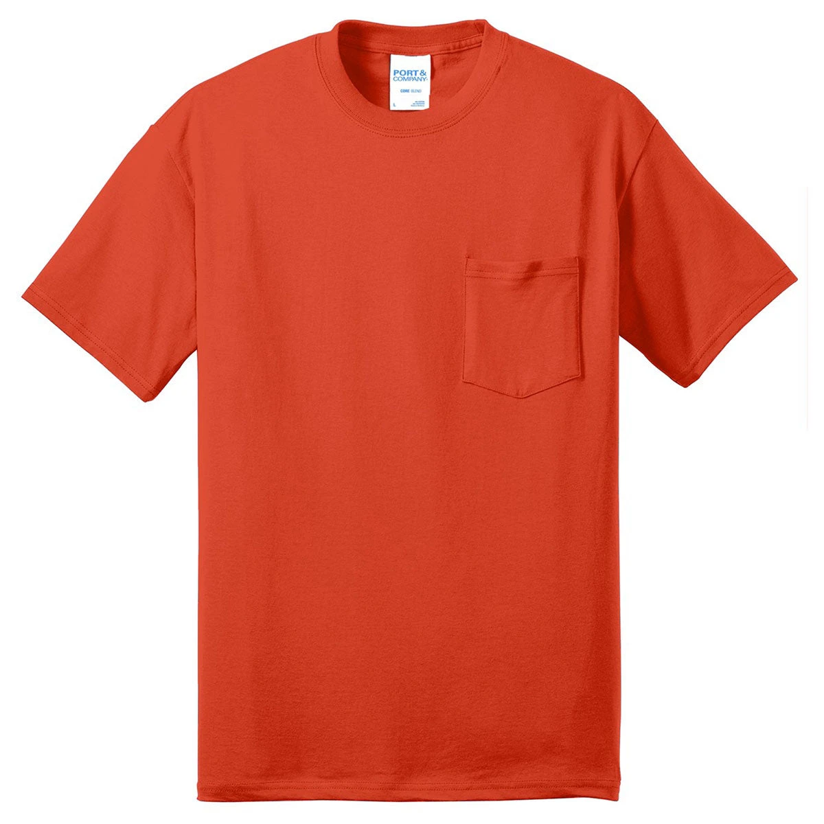 At the next company sponsored event, hand out the printed Port & Company Men’s Orange Core Blend Pocket Tee to thank the loyal customers that have made your business a superstar in the community. Opposite the convenient left chest pocket is an area to attach a custom logo. With a logo, you connect with customer prospects at industry trade shows. Port & Co blends recycled polyester into the fabric not only to bolster the strength of the long lasting tee, but also to make an eco-friendly fashion statement. Super smooth cotton delivers all day comfort to keep you energized.