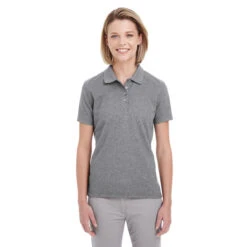 UltraClub Women’s Light Green Cool & Dry Jacquard Stripe Polo