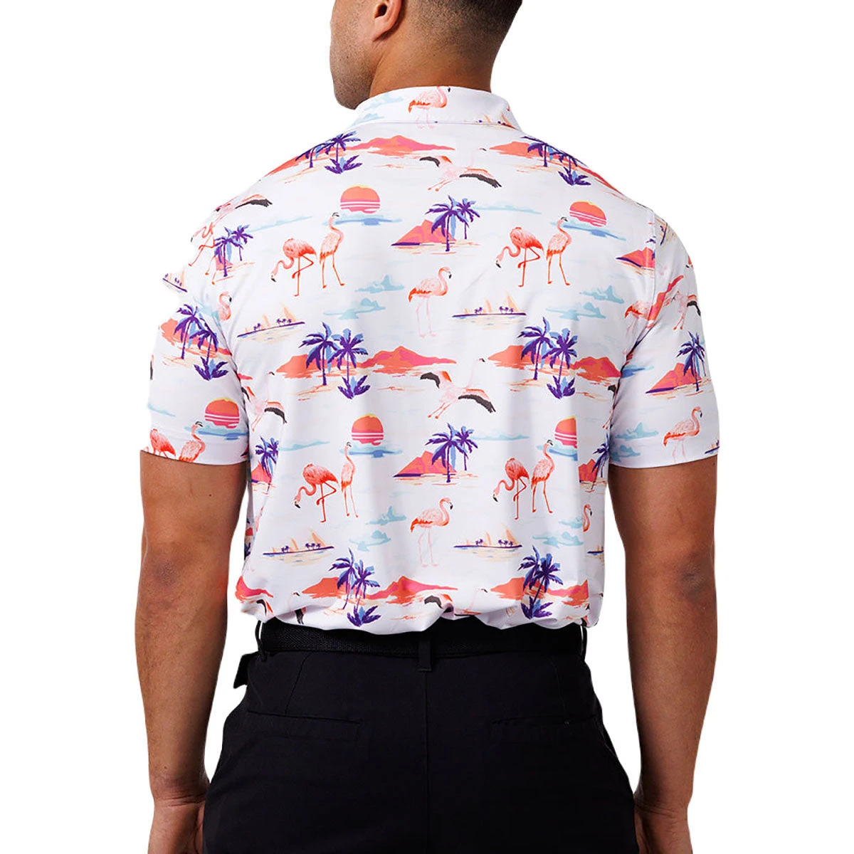 The custom logo Waggle Men’s Flamingo Sunset Polo offers a cheerful vibe and stylish design for your gift recipients to enjoy. You can add your embroidery logo to the shirt and you have a wonderful promo product to hand out as an employee gift or trade show giveaway item.