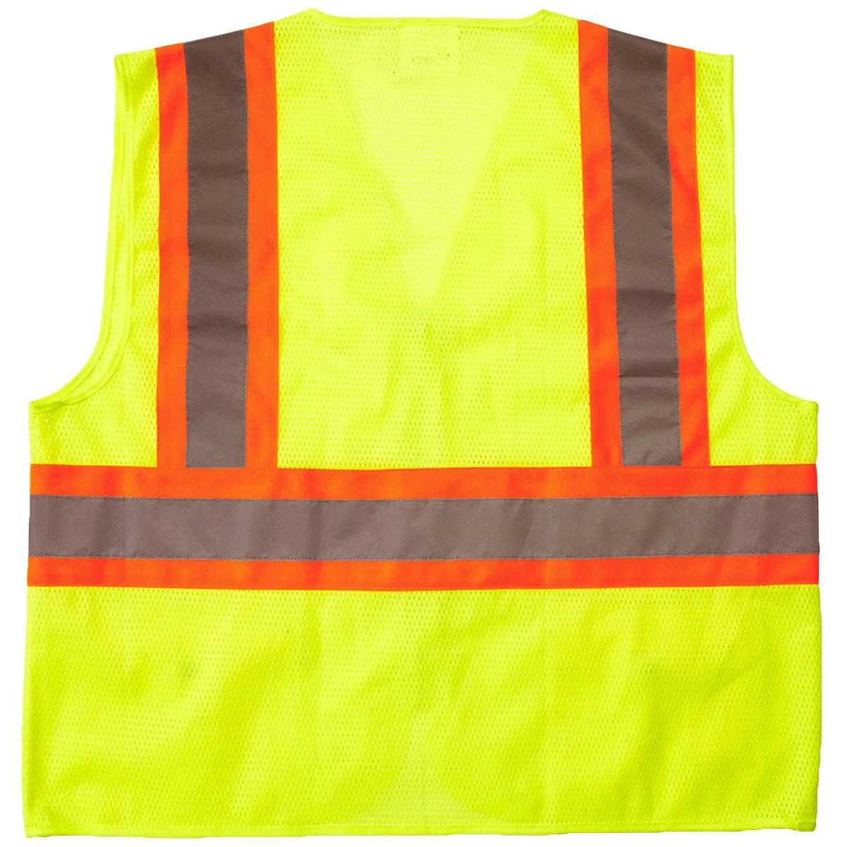 Add embroidery to the Xtreme Visibility Unisex Yellow DOT Class 2 Contrast Stripe Zip Vest for a custom look that is safety conscious and comfortable. The DOT Type R Class 2 contrast zip vest is ANSI 107-2015 compliant with mesh fabric in yellow and contrasting orange stripes. Best of all, the zip front vests have two lower external snap pockets and a left chest pocket for small items necessary to whatever job you are doing. Add a company logo to create employee apparel that keeps employees safe and comfortable while working outdoors or in dangerous environments. Place an order today to make sure your employees are ready for whatever comes their way.